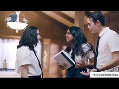 Stepsister and brother force teen to group sex